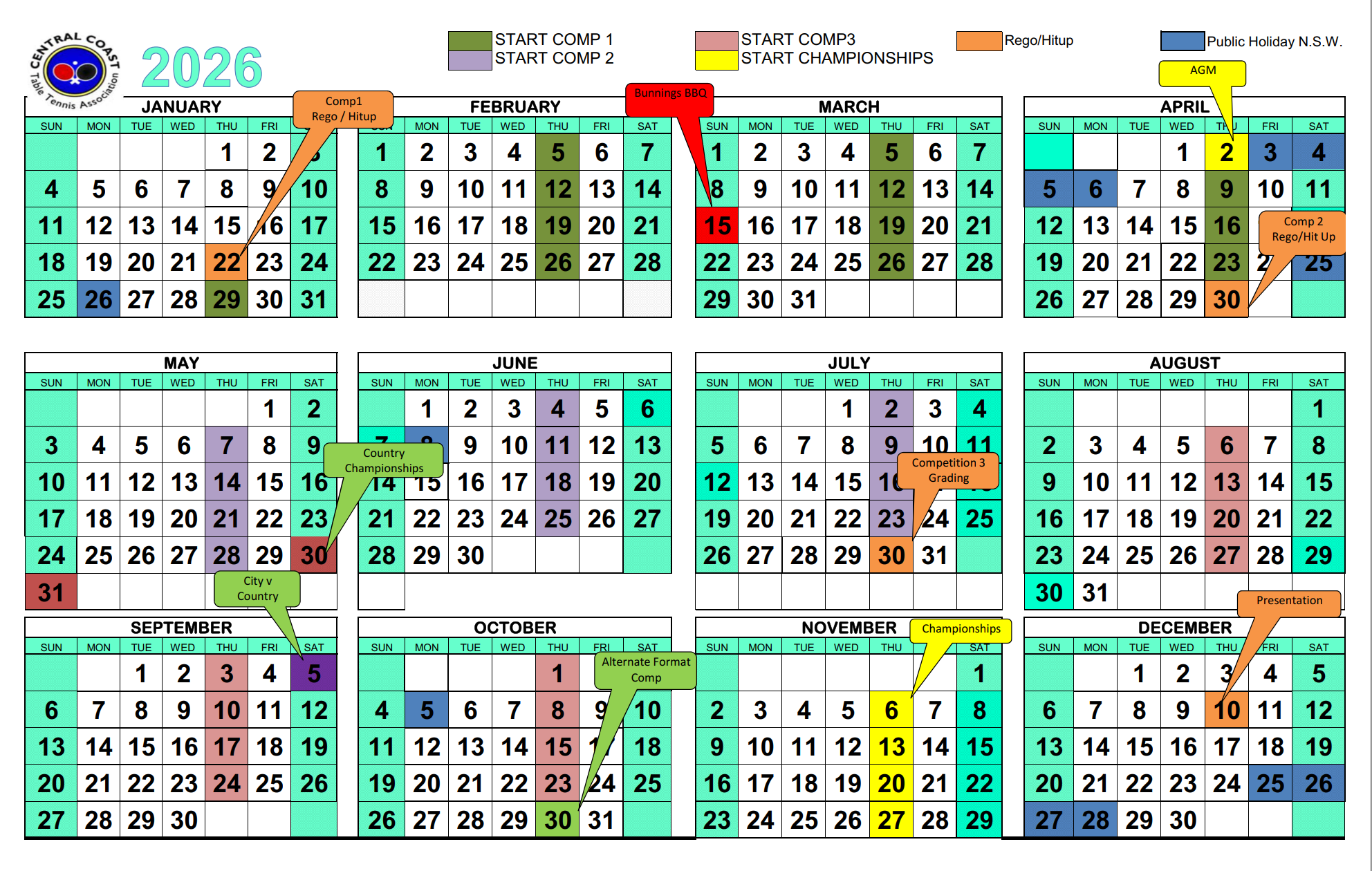 - Presentation night - Year end: 10th Dec 2026